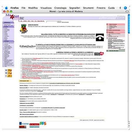 Nel 2002 le informazioni accumulate all'interno della Rete Civica Mo-Net sono riorganizzate completamente in modo da renderle fruibili da diverse tipologie di utenti dotati di vari gradi di alfabetizzazione informatica e favorire l’accesso intuitivo ai servizi secondo tre modalità di navigazione: per argomenti; per target di utenza; per elenco dei servizi disponibili online.